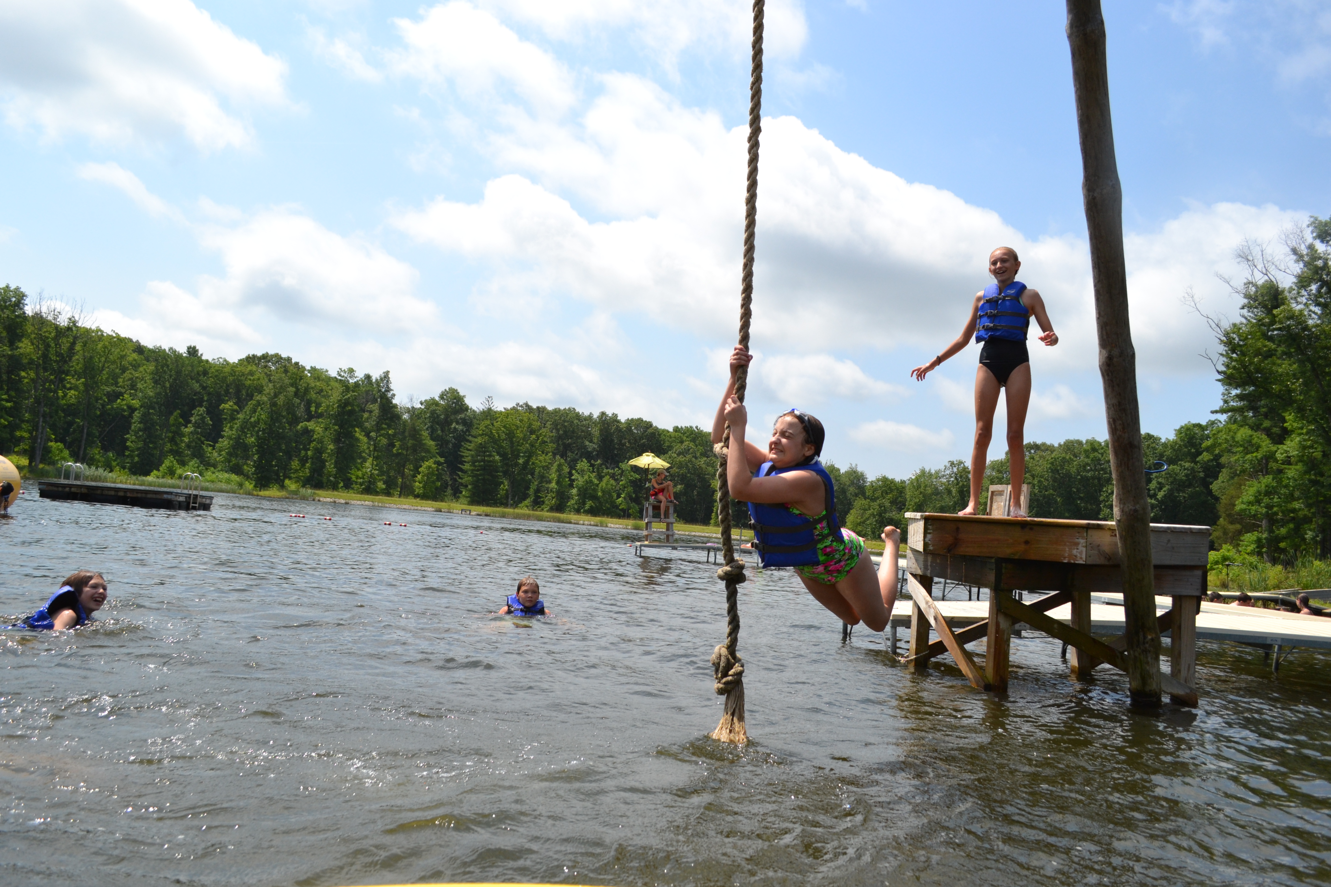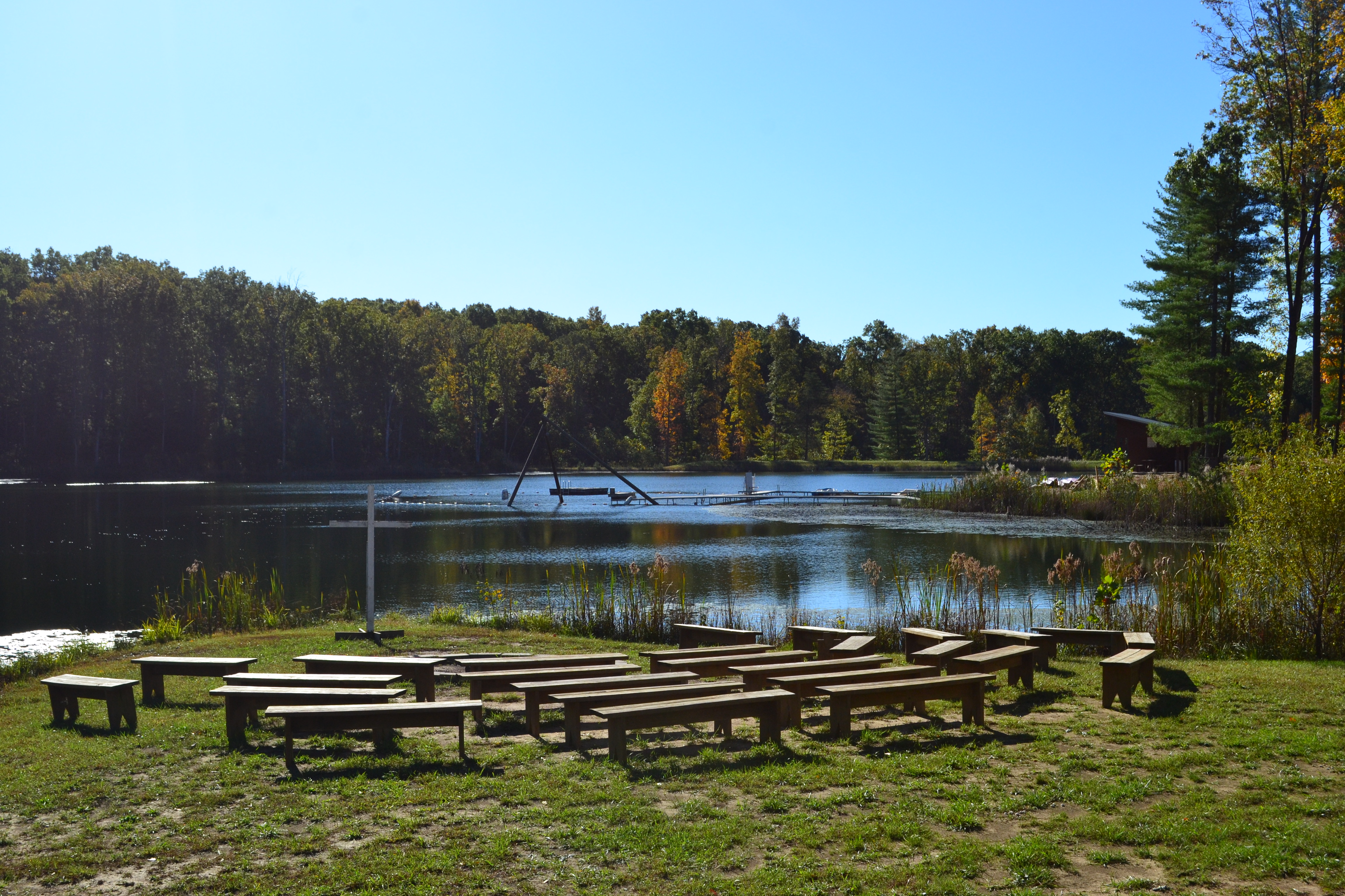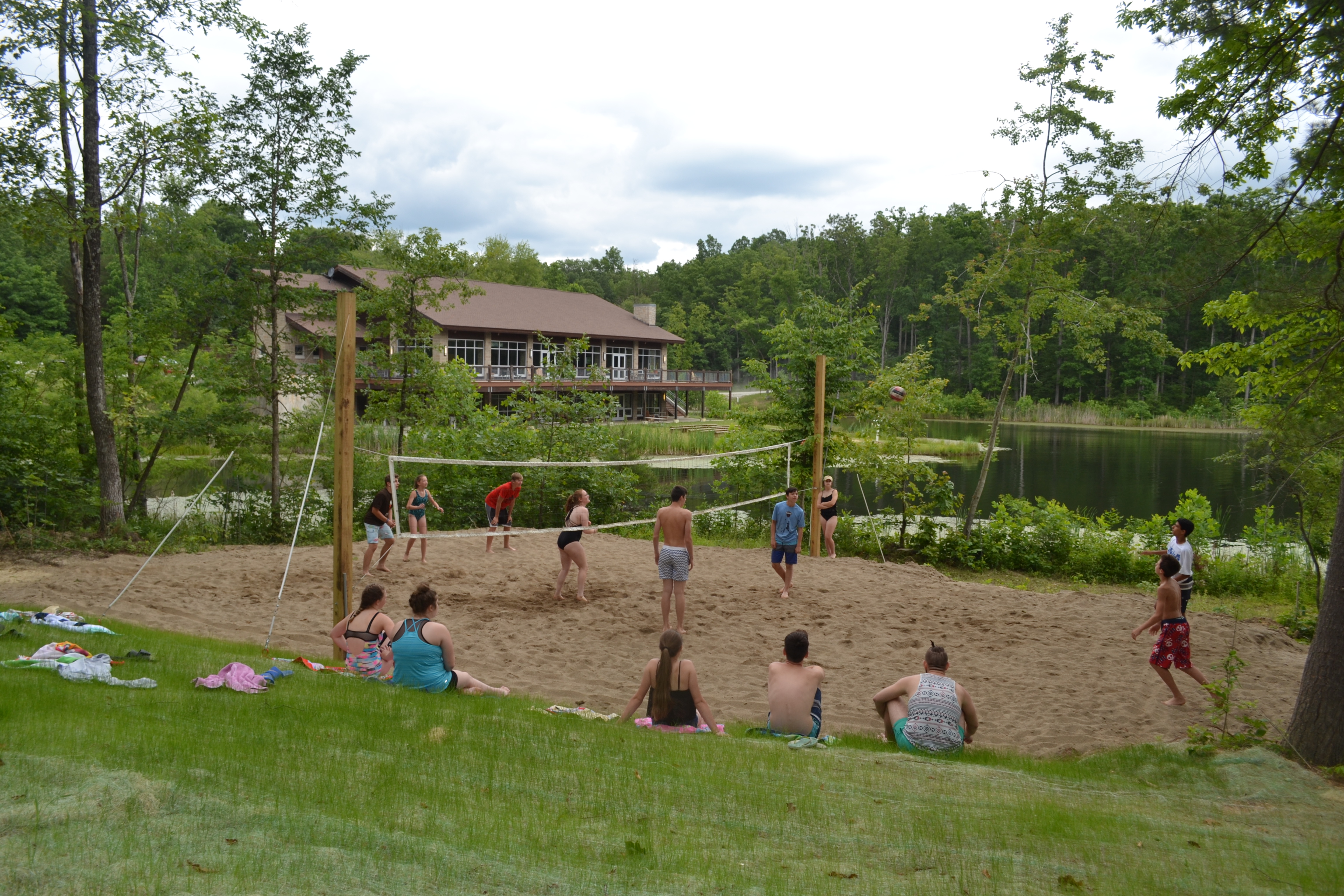 Constructed in 2008, the lake has a 30-foot dam and a deepest point of about 26 feet. The beach area has a swimming dock that provides an enclosed swimming area, a sandy beach, and a waterfront shed with a picnic shelter on one end and equipment storage area on the other. Bring your towel, and we’ll provide the fun!