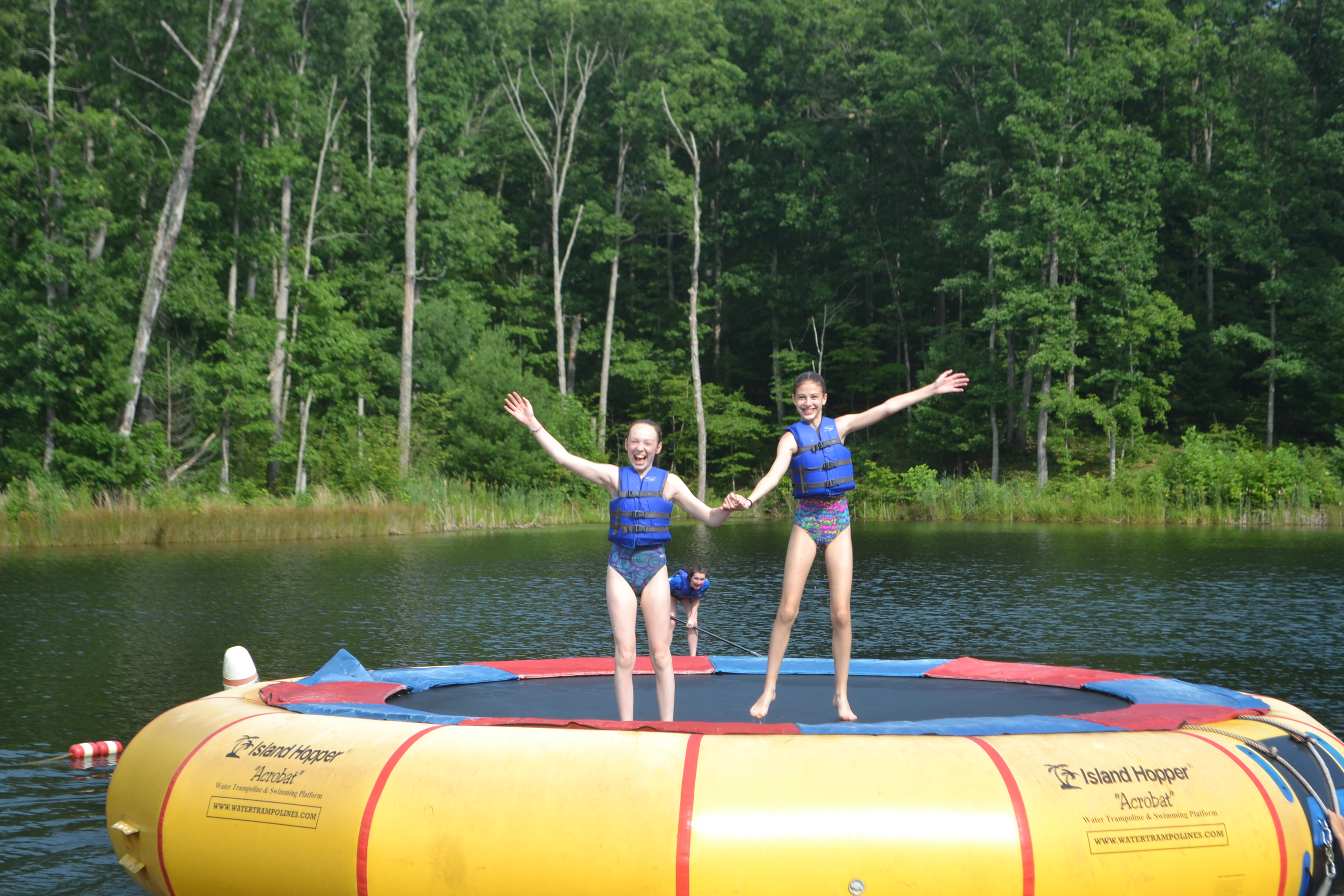 Lake Wehmeier is a 10-acre, man-made lake, located at Lakeview Villages. Campers and guests are sure to have a great time swimming, canoeing, kayaking, flying off the rope swing, or taking a turn on the 20′ water trampoline! We also hear that the fishing is pretty good.