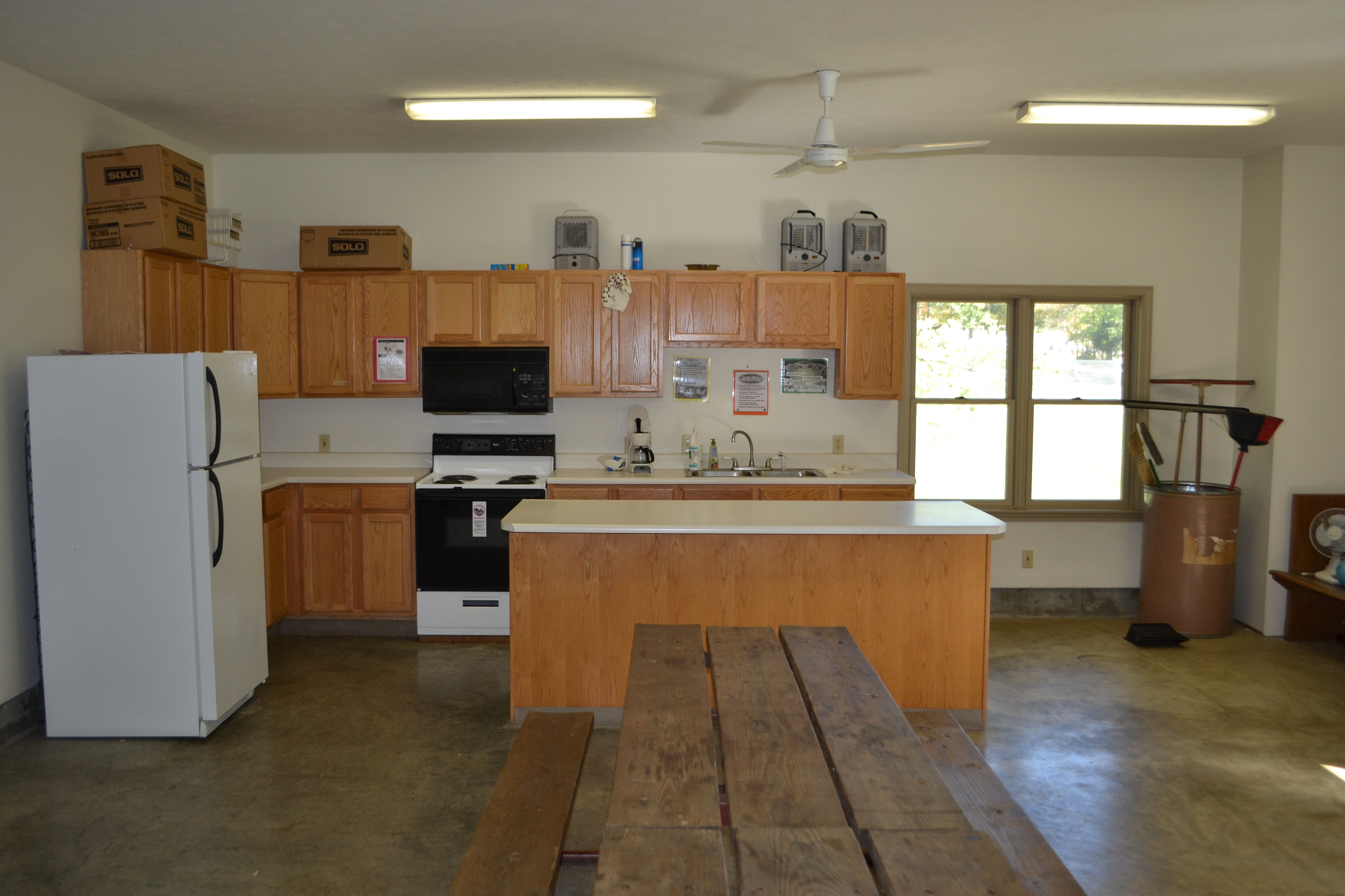 The Shelterhouse, constructed in 1998, provides a great facility for church outings, family reunions, youth retreats, and other day events. The facility has a large, covered, outdoor seating area for up to 120 people on picnic tables. It also includes an indoor meeting space with a full residential kitchen, for all of your cooking needs. Restrooms are located on the lower level of the building, and a fire pit and wood are also provided nearby.