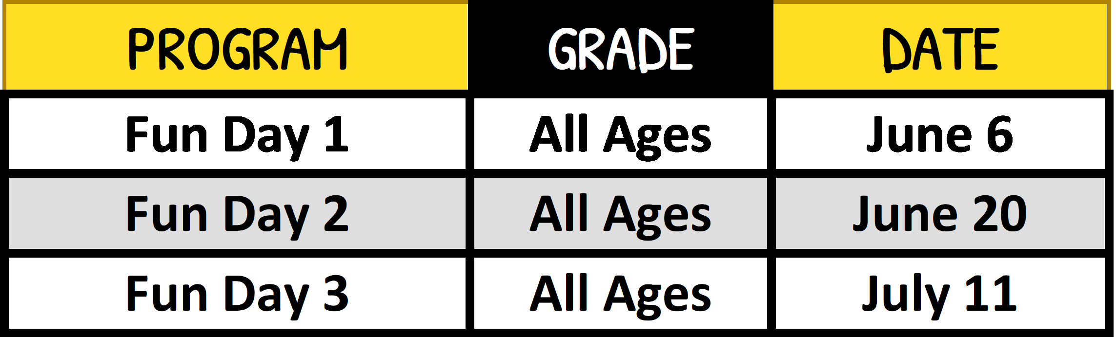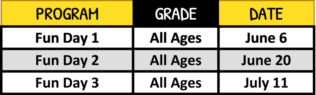 Fun Days ($20/Person, Children 4 and under FREE)