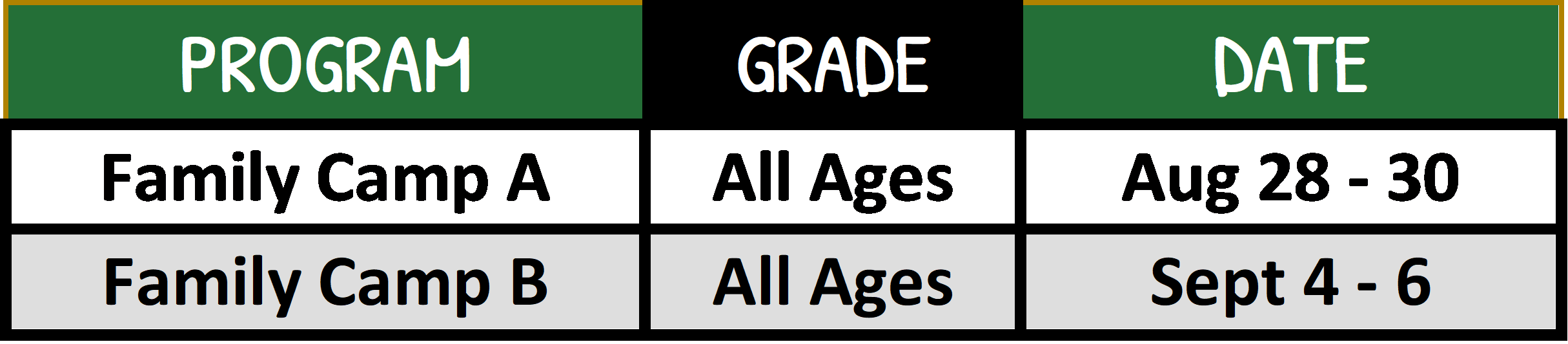 This is your one-stop spot for everything you need to know about our Family Programs this summer. Scroll down to find the different programs we offer, dates, prices, schedules, and more! Once you’re ready to register, click the blue “Register” button at the very top of the page.