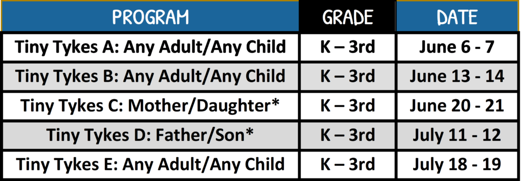 Tiny Tykes (Tier A: $275, Tier B: $225, Tier C: $175)